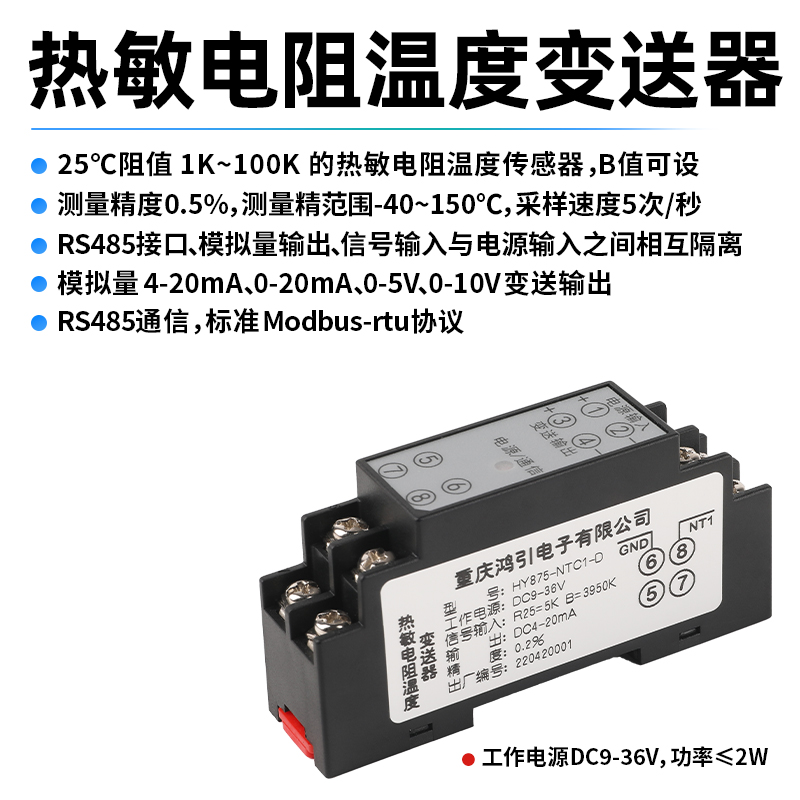 型號 | RS485通信:HY875-NTC3-R 模擬量變送:HY875-NTC-D |